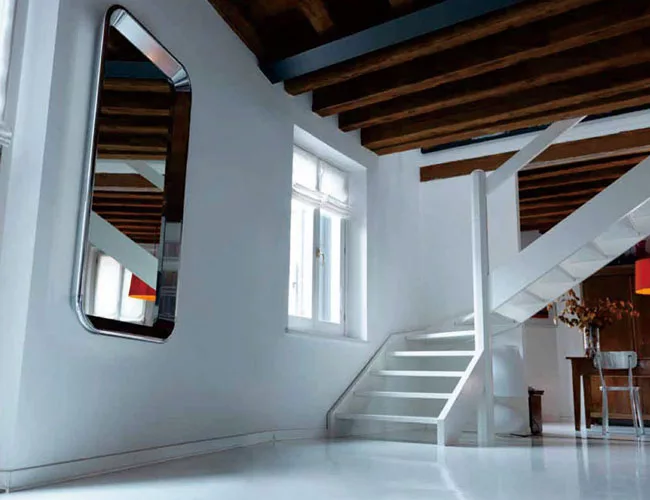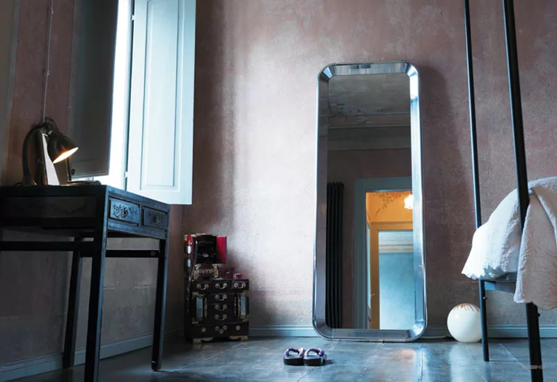 因為不是普通鏡框,Deja-vu 似曾相識立鏡就像個巨大的銀色托盤,能讓空間更具延伸感,在臥室或是玄關走廊等